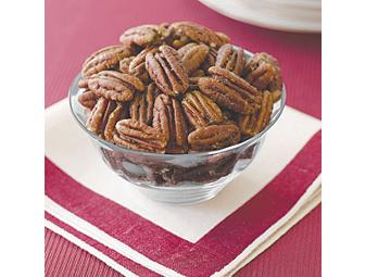 CAUTION: These spiced pecans are addictive! These sweet and spicy nuts are a fun addition to any holiday party, and also make a yummy and festive snack. Mmmmm...