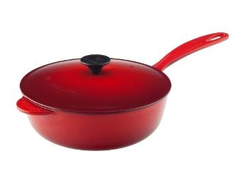 Whether creating a homemade marinara using fresh tomatoes and basil or carefully monitoring a wine reduction for oven-roasted chicken, the enameled cast iron saucier provides an optimal medium for saucemaking. With its precise and responsive temperature control properties, cast iron holds the steady low-to-medium heat required for many delicate sauces. The pan’s smoothly curved interior also makes stirring and cleaning easier than ever, with no tight corners to trap ingredients.