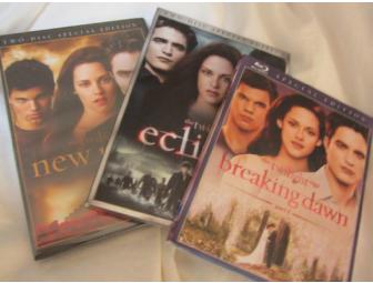 Just in time for the release of the final chapter in the hit “Twilight” series, complete your family’s collection with the three films that came before it: a two-disc special DVD edition of Twilight: New Moon, a two-disc special DVD edition of Twilight: Eclipse, and a special two-disc DVD edition of Twilight: Breaking Dawn Part 1.