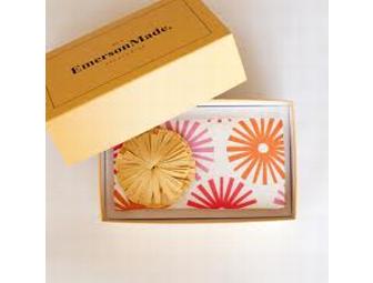 Delightful Flower Clutch by EmersonMade! Available in beige with multicolored flowered pattern (shown). We just adore this Best Friend Clutch. Handmade in Connecticut, it even has a removable flower that you can wear as a pin — too cute!