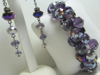Slip on this brand new bracelet and earring set by Ali Khan, with purple, blue, and brown-tinted glass beads and crafted in silver tone mixed metal. It will instantly glam up any outfit.