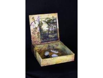 black & white photographs w/mixed media on wood box. 8"x8"x2"