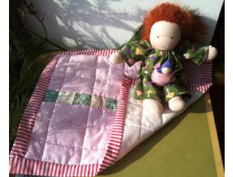 Handmade Quilt made of 100% cotton fabric and polyester batting. Lightweight and machine washable, crafted by New Amsterdam mother Claire Szeto. Craft hours: 5 hours