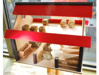 A shepherd gnome and his child watch over the sheep in this wooden barn. There are stalls for the sheep, hay for them to eat and lots of nooks and crannies for them to explore!