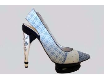 Georgeous Roberto Cavalli white and blue suede platform slingbacks. Unlike anything you've ever seen! A true work of art.