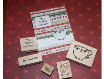 Designer Joyce Meyer from Texana Designs (owned by Jimmy Mitchell on Etsy) handmade a set of five stamps as a part of "Time for Tea" stamp set.