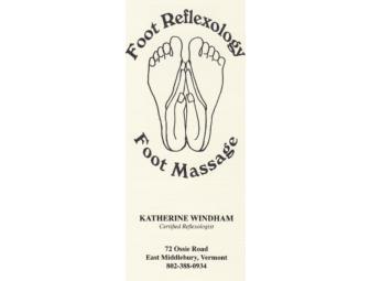 This gift certificate entitles the bearer to one session of foot reflexology and foot massage by Katherine Windham in East Middlebury, VT.