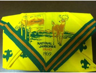 This neckerchief is in great condition and is from the 1969 National Jamboree that was held in Farragut State Park, Idaho. "Building to Serve" was the theme and 34,251 people went and participated in the jamboree.