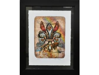 Ask anyone in Louisiana where to find the best art and they'll direct you to Candice Alexander Art Studio. For over 12 years Candice has been creating Louisiana inspired art which is collected nationally and internationally. Alexander Art Studio was founded in 2002 by Candice Alexander with a old school room, chalkboard and a huge idea. She started her journey as an artist in the old Historic Central School Building in Lake Charles, LA. For 5 years she travelled with suitcases and a baby printing press to many shows, slept in campgrounds, built shops at Renaissance Fairs, painted in Jackson Square New Orleans, and sold work in front of the MET Museum while living in NYC. With over 350 Original Fleur de lis designs inspired by Louisiana's rich culture, the work speaks to the diverse colors of the Cajun, the Roughneck, the Creole, the Hurricane Survivor, the Swamp Rocker, the Rice Farmer, the Mardi Gras Queen, and the Jazz Musician. The "Fleur de lis-Worlds With in Series" began in 2007 and captures the essence of the artist's native community. 14 X 18