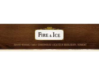 This item is a $100 gift certificate to Fire and Ice Restaurant in Middlebury, VT donated by the Bourdon Insurance Agency of Middlebury. It also has an additional $20 certificate. Visit at: http://bourdoninsurance.com/