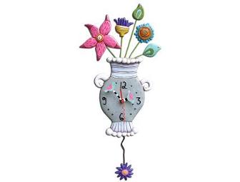 This item is an Allen Design Floral Wall Clock donated by Cacklin' Hens / Vermont Yarn, Beads & Gift Emporium of Middlebury. Visit at: http://cacklinhens.com/