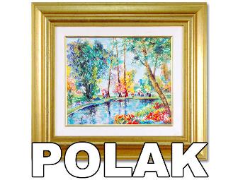 Polak's work combines a sophisticated use of color, with an Expressionist approach to the application of pigment to the surface of his paintings and original graphic works. The surfaces of his paintings on canvas are built-up texturally, and exhibit an unusual relief quality that at once catches the eye, and also affects the colors that he layers (glazes) one upon the other. The effect is one of a shimmering light that plays throughout his warm and inviting landscapes.
