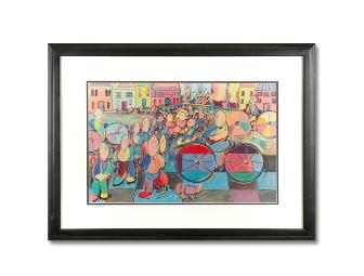 THIS WORK WAS PREVIOUSLY SHOWCASED IN A GALLERY AND THE FRAME MAY SHOW SIGNS OF WEAR. NOTE: PRICE DOES NOT INCLUDE FRAME. THE FRAME IS FREE!