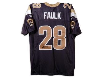 Bids are for a limited edition Marshall Faulk hand-signed official St. Louis Rams game jersey. After being drafted 2nd overall by the Indianapolis Colts in 1994, Faulk joined the Rams in 1999. Earning a Super Bowl ring with the Rams' victory in XXXIV, Faulk is a seven-time Pro Bowl selection. Faulk was also named 2000 NFL MVP by the Associated Press. Certificate of Authenticity included.