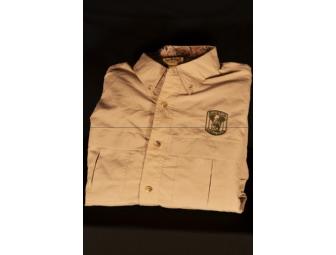 You'll be dressed for the safari in this long-sleeved large men's Houston Safari Club shirt with UV protection manufactured by GameGuard.