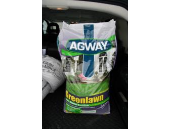 This item is a 50 pound bag of Agway Greenlawn Fertilizer donated by Middlebury, VT Agway.
