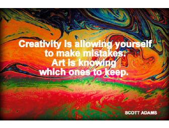 Have you ever heard a GREAT inspiring or fun QUOTE and thought, "I wish I could see that on my wall of my home or office each day?" Now you CAN! Our creative design team has mastered a series of wonderful visuals of "good vibrations" for everyone to share! Originally planned for "Art2Wear" and other goodies (like coffee mugs and messenger bags, totes, etc), we thought it might be a cool idea to share these with ALL of YOU, as way cool gifts for your friends, and to remind you that with each one you "buy now": 100% of net proceeds will be applied to the development of "ART AND TIME” ; Coffee Table Books that mash up ART and POETRY, in development now to inspire, encourage, and SUPPORT more Creative Project participation in schools!