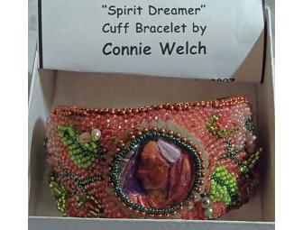 This gorgeous cuff bracelet was made by Connie Welch as a donation for "Beading for a Cure", an online auction with proceeds going to research for colorectal cancer.