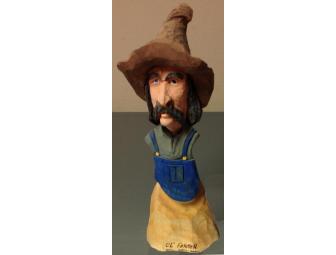 Wooden carving of a farmer in Basswood with linseed oil finish