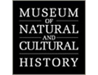 1 Year Membership to the University of Oregon Museum of Natural and Cultural History: As a member you will recieve early notification about our upcoming events, free admission to exhibits and public programs, discount shopping in the museum store and you also become a memeber of The Association of Science and Technology Centers (ASTC). Your memeber card will enable you to recieve discounts in over 300 participating museums and science centers