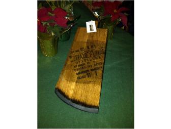 This cutting board is made from white oak barrels used to cure KY Bourbon. This particular cutting board is from Buffalo Trace Distillery maker of Blanton's Bourbon.