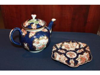 This rare, blue-scale Worcester tea pot with underplate is an eye catching set that will add an extra sense of sophistication to your next high tea. C. 1770