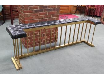 Liven up a fire place with this stunnin g English brass club fender. The tufted leather cushion offers a cozy seat to warm by a fire or to engage in friendly conversation. Circa 1920