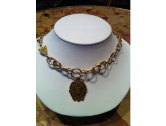 This 18-inch necklace features our Blackforest medal which can be engraved. The excluseive Ex Voto toggle closure is attached at the back of the necklace. Varying styles of chain make this piece unique and sure to be a conversation starter.