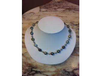 This round, drop Tahitian pearl and round, brilliant-cut diamond necklace mounted in 18 karat white cold is exquisite in design and craftsmanship. Maqqueritte's consistently offers the area's most glamerous jerelry design. This pearl and diamond necklace is appropriate for both day and night. With a crisp white shirt or an elegant ball gown, it's simply gorgeous.