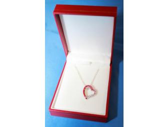 Sterling silver chain and heart pendant. 20 inch sterling silver chain, heart open with red-pink-clear cubic zirconia in a sterling silver back.