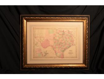 An exceptional example of A.J. Johnson's highly desirable map of Texas.  Created shortly after the American Civil War, this extraordinary folio map details the state of Texas in full.  Johnson identifies various cities, towns, rivers, and assortment of additional topographical details.  Published by A.J. Johnson and Ward as plate numbers 46 and 47 in the 1866 edition of Johnson's New Illustrated Family Atlas. This is the final edition of Johnson's Atlas to bear the "Johnson and Ward" imprint.  Professionally framed.