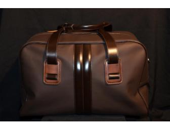 For your every traveling need, you'll have this Tod's large duffle. This great bag comes in a rich dark brown color, waterproof fabric with leather accents. Your new carry on bag has arrived! Measures approximately 12"x18"x7".