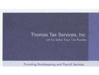 This item is a $100 Gift Certificate for your 2012 Personal Tax Preparation donated by Thomas Tax Services, Inc. on Main Street in Vergennes, VT.