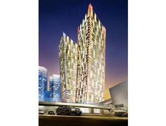 Enjoy a 4 night stay in the heart of Las Vegas in this luxurious 1900 square foot, 2 bedroom, 2½ bathroom, fully furnished condo. Sleeps 7-8 people. Offers a terrific view of 4th of July and New Year's Eve festivities. Amenities include a roof-top pool, gym, concierge, valet parking.