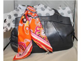 Navy/Grey Leather Coach Shoulder Bag with 3 Compartments