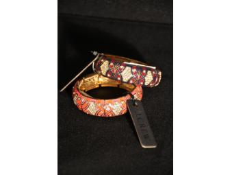 This great set of two J. Crew bracelets, one in orange and pink and the other in maroon and navy have rhinestone accents to complete any look. Both bracelets have no closures, but stretch to accomodate your hand.