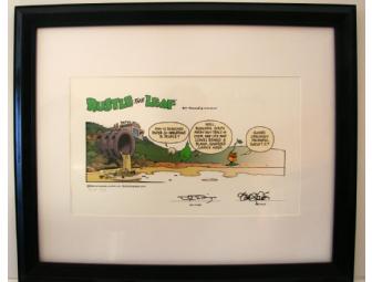 This item is a limited edition print of an environmental comic strip entitled "Rustle the Leaf". It is signed by the artists, Dave Ponce and Dan Wright, and is in a black frame 19" x 23". This limited reproduction of one of the "first 30" was produced using an 8 color archival print system. The paper is acid-free, 100% cotton rag. Print #13 of 150.