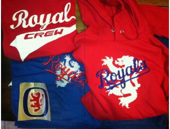 Adult Small Red Sweatshirt, Royals Blanket, Small Royal Crew T-shirt, and car decal. (Sizing is negotiable).