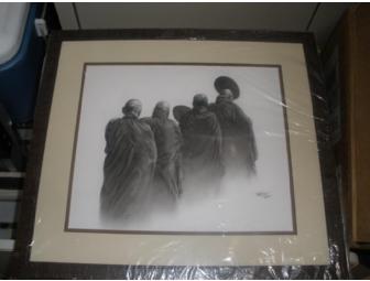 Pencil drawing is 9.5 x 11.5 in frame and was purchased in Myanamar in 2012. Scene portrays group of Buddhist monks. By local artist selling from stall in market of town of Lalaw. Museum quality framing done in Albuquerque.