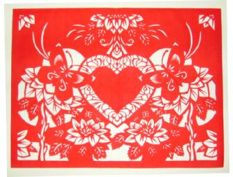 A delicate and vivid piece of art with deep meaning for your sweetie. This original papercut was made by an Andover artist using authentic red Chinese paper. In Chinese art, the butterfly most often symbolizes transformation, but is also associated with celebration, lightness, and the soul. The Paper-cut is a very distinctive visual art of Chinese handicrafts. It originated from the 6th century when women used to paste golden and silver foil cuttings onto their hair at the temples, and men used them in sacred rituals. Later, they were used during festivals to decorate gates and windows. After hundreds of years' development, now they have become a very popular means of decoration among country folk, especially women.
