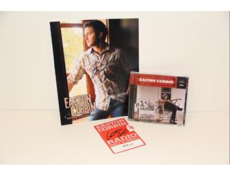 The Package includes an Easton Corbin autographed CD, guitar pick, and a full color 8x10 signed photo