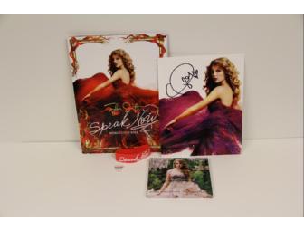 2011 Tour Book with Poster, CD "Speak Now" Special CMA Consideration Cover, a full color 8x10 signed picture, a "Speak Now" Bracelet and Guitar Pick