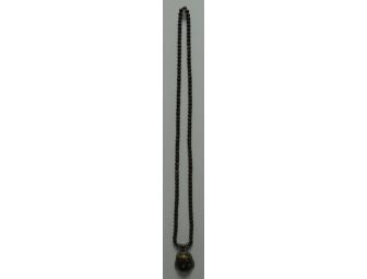 Buddha Necklace - Brown horn carved Buddha with sterling silver case on hard beads with red quartz.