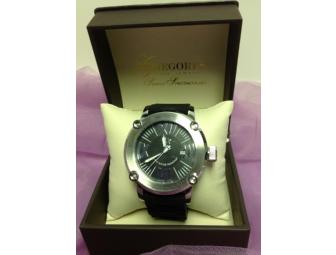 Gregory's Fine Jewelry - Yagi Gentleman's Watch with a stainless steel head and black dial with a black rubber strap.
