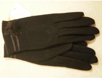 Women's or misses' black stretch-knit gloves in luxurious wool and rabbit fur detail will keep hands toasty warm on the coldest winter day!