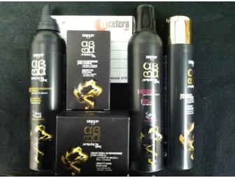 Basket of haircare products and haircut gift certificate.