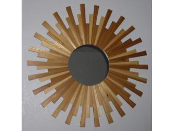 Add some flare to any room with a starburst mirror made of variegated colors of Western Red Cedar wood, made by Delaware County 4-H'er, Carrie Voelker. Radiating outward form the 12.5 inch diameter mirror in the center, this mirror will grab your attention. Half the proceeds from this mirror will support Delaware County 4-H programs.