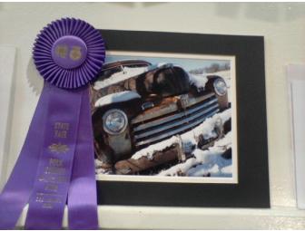 This colored photo of a 1946 Ford car in the snow was taken by Polk County 4-H'er, Jenna Kasper. The photo is matted with a black frame and measures 14.5 in x 17.5 in. Half the proceeds of this photo will be returned to the Levis-N-Lace 4-H Club in Polk County.