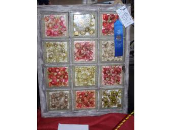 Window Frame Art This unique wall piece was created by Winneshiek County 4-H'er, Mikayla Lien. This piece of art was made using an antique window frame with 6 inch tile squares placed on the individual glass panes. The tiles were then decorated with alcohol inks. The frame measures 34 in x 27 in. Half the proceeds of this project will be returned to Winneshiek County 4-H.