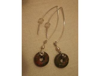 Chi's Creations - Freshwater Pearl and Agate Silver Earrings